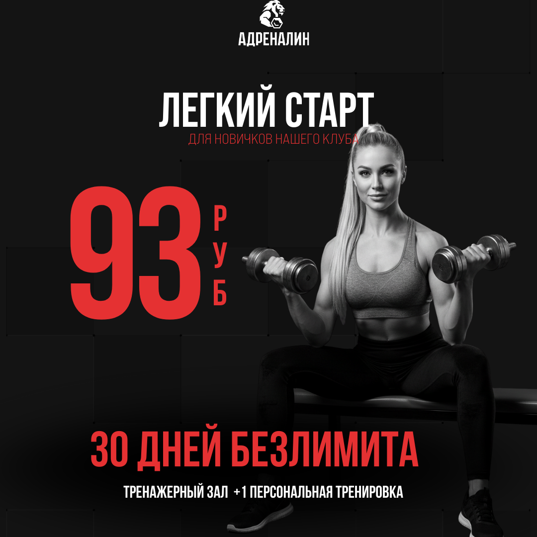 Получите безлимитный доступ на 30 дней в фитнес-клуб «Адреналин» Гошкевича, 3! 🔥